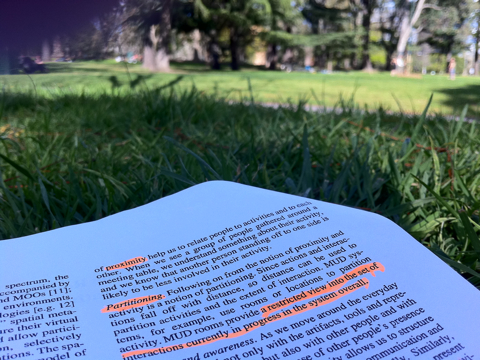 The first weekend of sunshine has brought everyone and their frisbee out, and I’m enjoying the best of both worlds armed with a highlighter and a backpack for a pillow. What better place to think about context-awareness in parks than in a park?